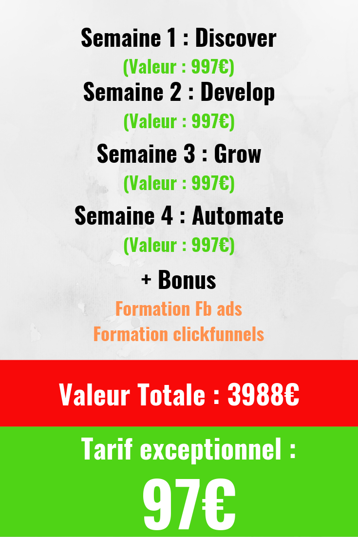 Si vous commencez de zéro, Il vous donne 2 compétences clés que vous allez pouvoir monétiser, la création de publicité Facebook pour des entreprises et la création de tunnels de vente.